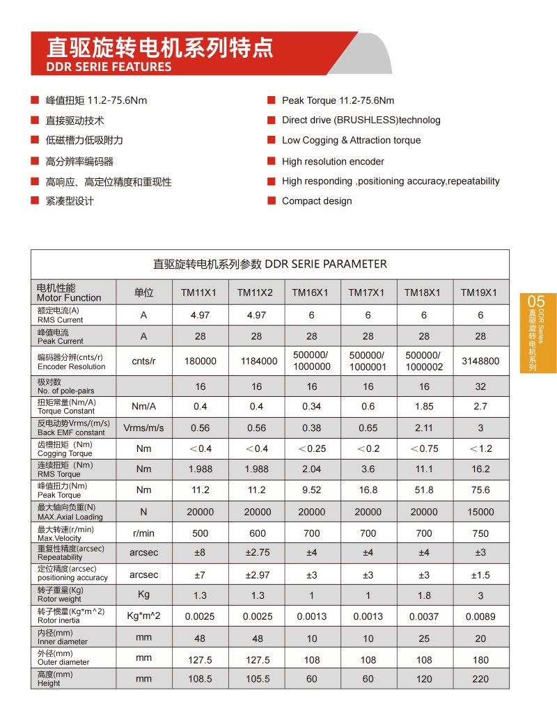 | 直驱旋转电机系列参数DDR SERIE PARAMETER | |||||||