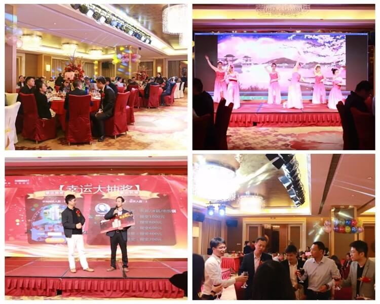 大会结束后,日东科技供应商答谢晚宴在宝利来酒店宴会厅举行,总经理林晓新为2019年日东科技十大优秀供应商颁奖。晚宴上还准备了精彩的舞蹈表演和激动人心的抽奖环节,在2020新年即将到来之际,大家欢聚一堂,推杯换盏,其乐融融!