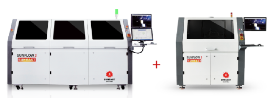 特点:SUNFLOW3为选择焊标准一体机,喷雾、预热和焊接模组可同时工作,连续进板,生产效率高,单泵工作,焊接灵活。支持在线/离线编程,每个焊点可独立设置焊接参数,可对PCB双面焊接,全程显示焊接状态。