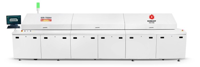 八温区回流焊各温区的温度设置,是跟据回流焊四大温区(预热区、恒温区、回流焊接区、冷却区)的作用原理来设置的,其实不管是八温区、十温区还是十二温区的回流焊,都要遵循这个基本的原理。当然还要根据自己生产现场的实际情况进行调节,比如用的是RTS还是RSS曲线?生产不同的产品,使用不同的原材料(PCB基板的材料、厚度、材质、贴片的类型等),使用不同的焊膏,温度设置都会有所不同。下面我们对回流焊过程剖析: