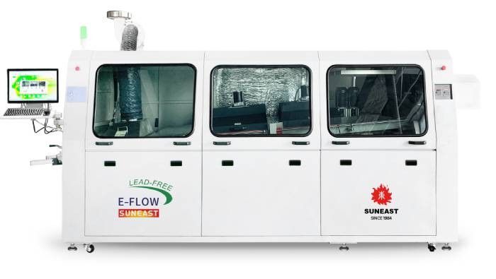 彩运网 7:新型波峰喷口,波峰外部调节,适用新一代的焊接工艺,波峰稳定平滑,氧化量小,锡渣自动导流;预加热温度控制系统采用PID控制。