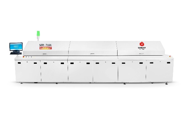 真空回流焊在焊接区抽真空,防止焊接气泡的产生,升温区、保温区和冷却区是非真空;