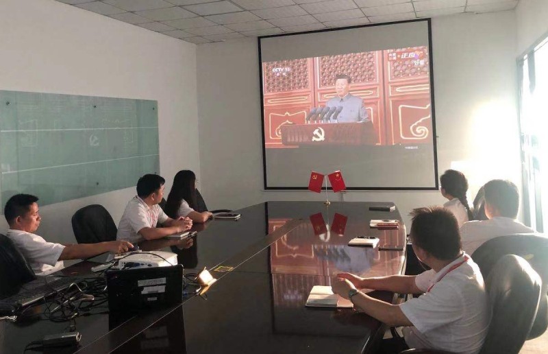 7月1日下午,受总经理林晓新委派,日东科技联合公司党支部组织党员及入党积极分子在A 栋4楼会议室,学习习总书记的 重要讲话,重温党的百年奋斗历史,深入学习百年沧桑巨变中,中国人民在中国共产党的领导下发生了翻天覆地的变化,通过学习更加坚定了我们听党话、跟党走的决心,新时代我们沐浴在党旗的光辉下更加要高举社会主伟大旗帜,把青春奋斗融入党和人民的事业中,立足本岗,努力成为实现中华民族伟大复兴的先锋力量,请党放心强国有我!活动结束后,公司联合党支部宋书记向党员同志及入党积极分子准备了建党一百周年纪念品以作留念。