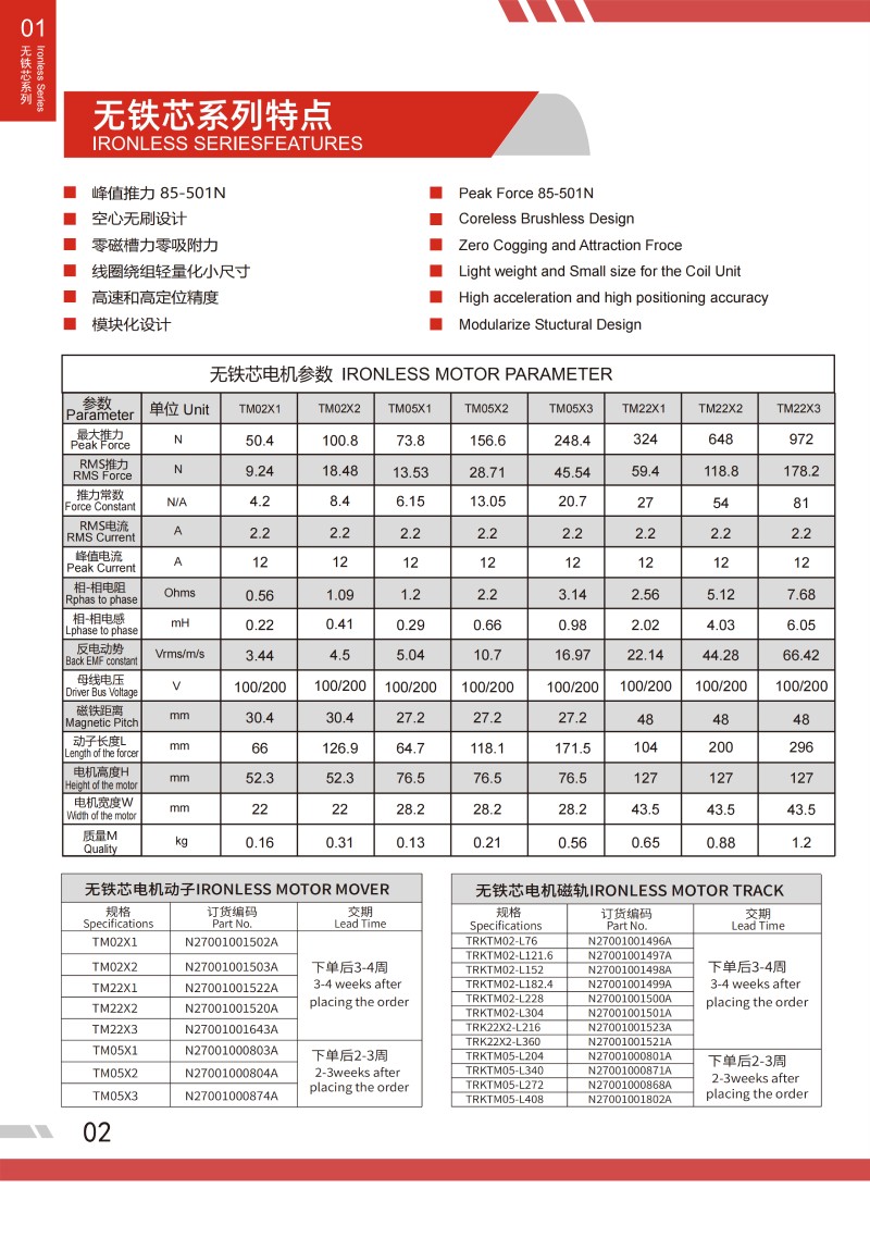 | 无铁芯直线电机参数IRON LESS MOTOR PARAMETER | |||||||||