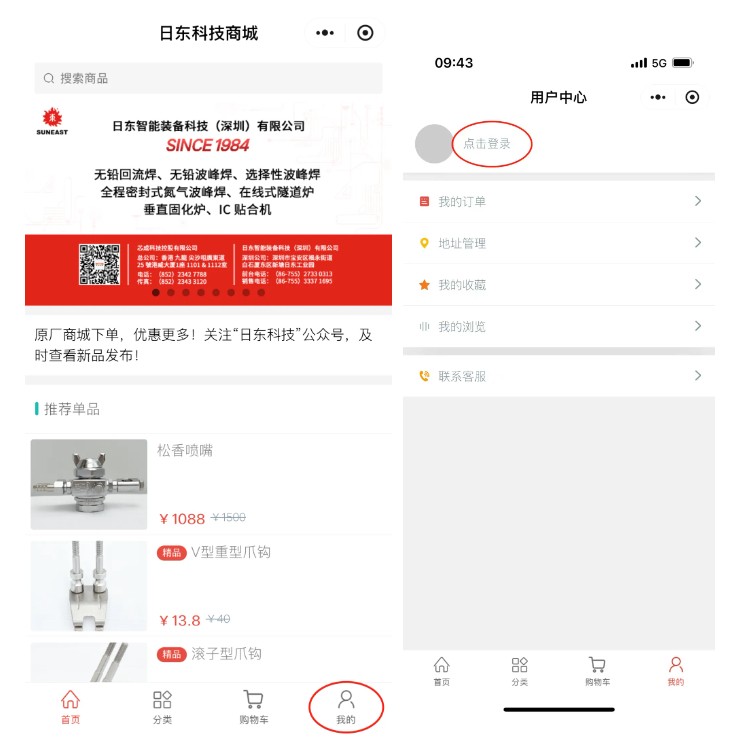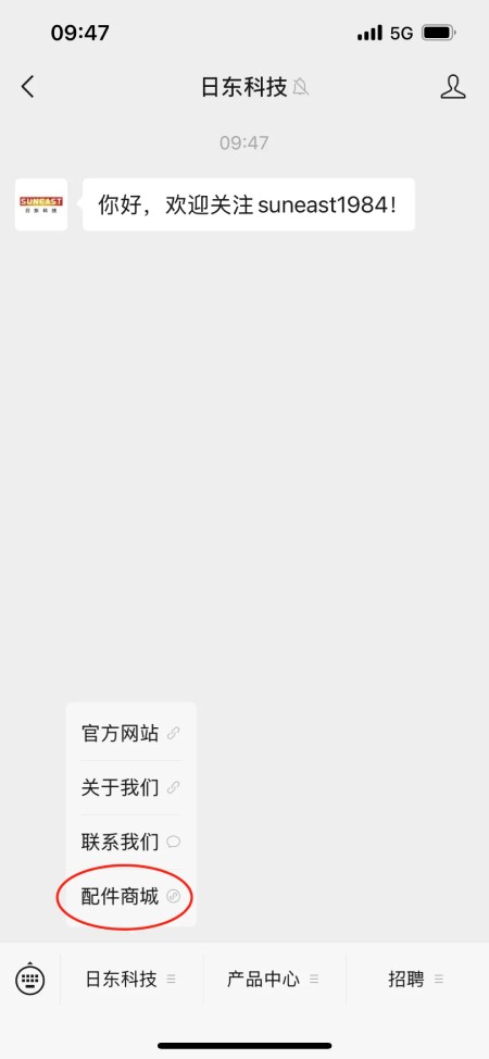 通过日东科技公众号进入商城