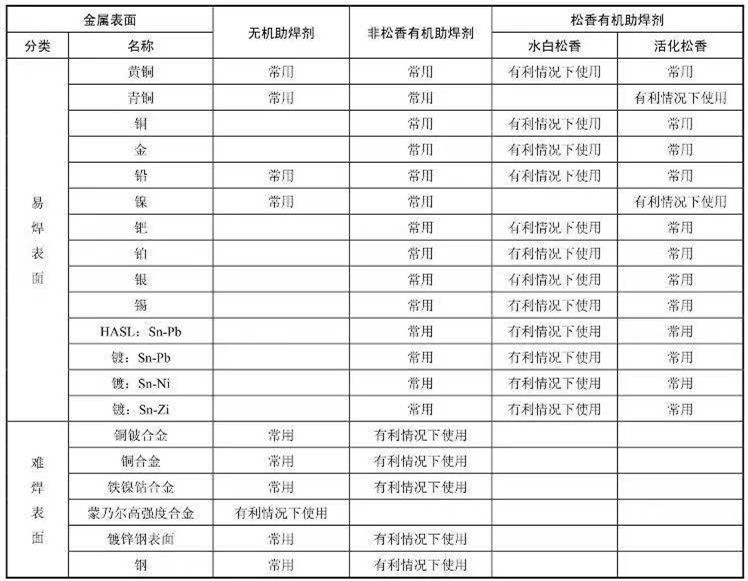 彩运网 ②有利条件下使用:在表面无严重的锈膜或类似的污染时,可用水白松香助焊剂。通常这类金属表面可用活化松香或非松香有机材料助焊剂进行焊接。
