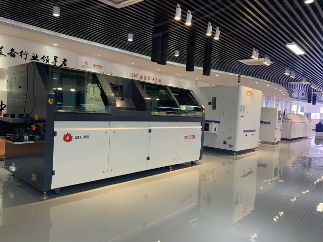 彩运网 (8)清洗设备的作用是将贴装好的PCB上影响电气性能的物质或对人体有害的焊接残留物除去,如助焊剂等。若使用免清洗焊料,则可以不用清洗。清洗所用设备为超声波清洗机和专用清洗液,其安装位置不固定,可以在线,也可不在线。