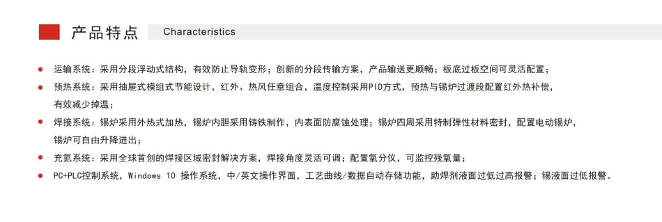 PC+PLC控制系统:Windows10操作系统,中/英文操作界面,工艺曲线/数据自动存储功能,助焊剂液面过低过高报警;锡液面过低报警。